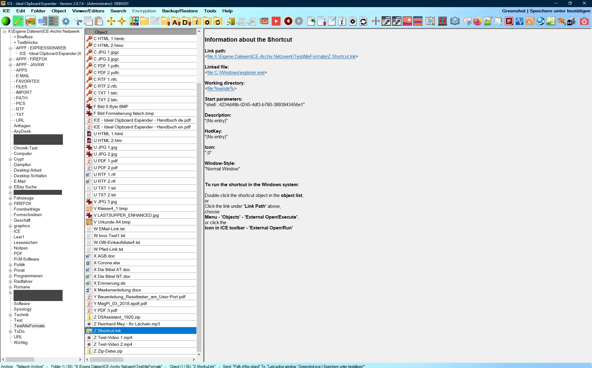 The Shortcut-Viewer in ICE
